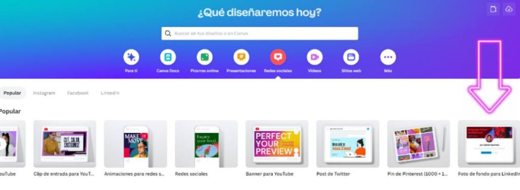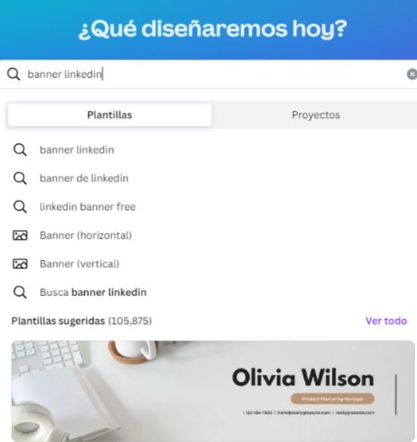 De lo contrario, en la barra de búsqueda escribe banner LinkedIn y tendrás propuestas en el formato 1584 x 396 píxeles.